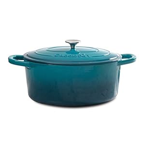 Crock-Pot Artisan Oval Enameled Cast Iron Dutch Oven, 7-Quart, Teal Ombre