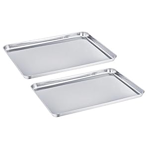Baking Sheet Set of 2, HKJ Chef Stainless Steel Cookie Sheet Set 2 Pieces Toaster Oven Tray Pan Non Toxic ,Healthy Easy…