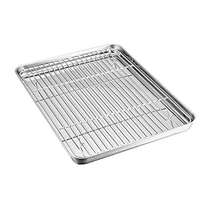 TeamFar Baking Sheet with Rack Set, Stainless Steel Baking Pan Tray Cookie Sheet with Cooling Rack, Non Toxic & Healthy…