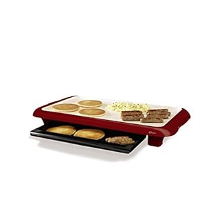Oster Titanium Infused DuraCeramic Griddle with Warming Tray, Candy Apple Red (CKSTGRFM18MR-TECO)