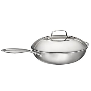 Multi-Ply Clad 18/10 Stainless Steel Wok Pan Stir Fry Pan With Dome Lid and Steamer Basket, 13-inch, By Bruntmor