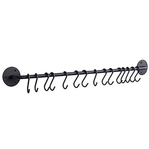 Wallniture Casto 30″ Gourmet Kitchen Rail with 15 S Hooks for Hanging Kitchen Utensils Set and Cookware, Iron, Frosty Black