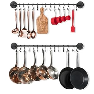 Wallniture Delux 33″ Pot Rack, Cooking Utensil Holder with 10 S Hooks for Pots and Pans Organizer Under Cabinet, Set of 2, Black