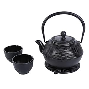 Juvale Black Cast Iron Tea Kettle Set for 2 – Contemporary Dutch Hobnail Design with Trivet, Two Cups – 1200 mL