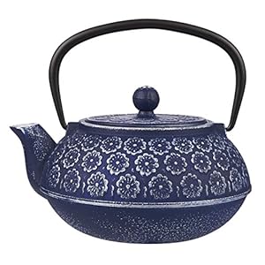 Juvale Blue Floral Cast Iron Teapot Kettle with Stainless Steel Infuser 34oz