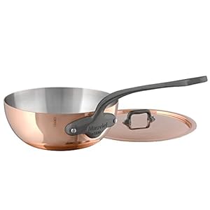 Mauviel M’Heritage M150C Curved Splayed Copper Saute Pan with Lid. 1.1L/1.2 quart 16cm/6.3″ with Cast Stainless Steel Iron Eletroplated Handle