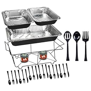 Tiger Chef 33-Piece Black Food Warmer Chafing Dish Buffet Set, Disposable Chafing Dishes with Colorful Baking Pans, Fuel…