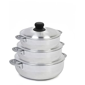 IMUSA USA 3 Piece Polish Aluminum Caldero Set, Silver 1.6, 3.2, 4.6-Quarts (Dutch Oven Set),Gray
