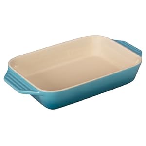 Le Creuset Stoneware Covered Rectangular Casserole, 3.5 qt. (12.5″ x 8.5″), Caribbean