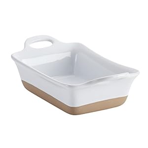 Rachael Ray Stoneware Rectangular Small Au Gratin Pan, 12 oz, White