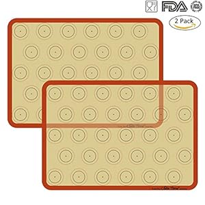 Macaron Silicone Baking Mat – Set of 2 Non Stick Silicon Macaroon Baking Sheet Cookie Liner(BPA Free/Reusable/Half Sheet…