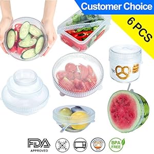 Rolican Silicone Reusable Stretch Lids Foods And Bowls Covers(6 pack)