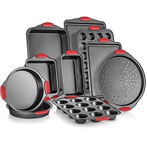 Perlli 10-Piece Nonstick Carbon Steel Bakeware Set With Red Silicone Handles | |Metal, Reusable, Quality Kitchenware For…