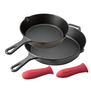 Pre-Seasoned Cast Iron Skillet 2-Piece Set (8-Inch and 10-Inch) Oven Safe Cookware – 2 Heat-Resistant Holders – Indoor…