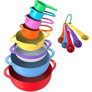 Vremi 13 Piece Mixing Bowl Set – Colorful Kitchen Bowls Colander Mesh Strainer with Handles Measuring Cups and Spoons…