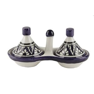 Moroccan Condiment Bowl Tagine, Berber Design Spice Duo (Blue and White)