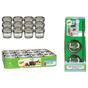 Ball 4-Ounce Quilted Crystal Jelly Jars with Lids and Bands, Set of 12, + Sip and Straw Lids
