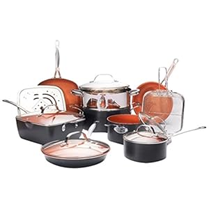 Gotham Steel Ultimate 15 Piece All in One Chef’s Kitchen Set Copper Coating – Includes Skillets, Stock Pots, Deep Square…