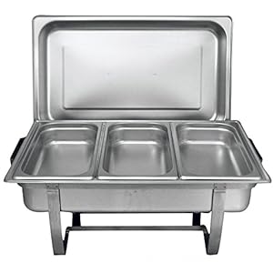 Chef Choice 8 Quart Full Size Stainless Steel Chafer 3 1/3rd Size Chafing Food Pans and Cool-Touch Plastic on top (1…