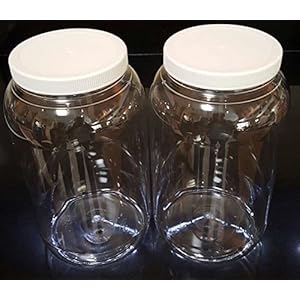 32 Oz Plastic Jars with smooth skirt unlined lids, wide mouth, Bulk Pack of 6, Clear Round Jar & White Lid,-Made in USA