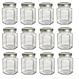 PremiumVials 12 Pcs, 6 Oz Large Hexagon Glass Jars with Gold Lids for Jam, Honey, Wedding Favors, Shower Favors, Baby…