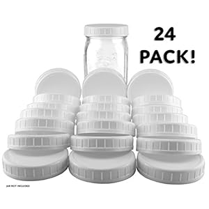 Two Dozen Wide Mouth Plastic Mason Jar Lids (24-Pack Bundle); 2 Dozen Unlined White Ribbed Lids, 86-450 Size