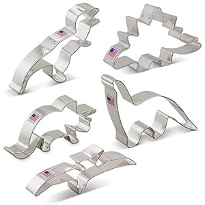 Ann Clark Cookie Cutters 5-Piece Dinosaur Cookie Cutter Set with Recipe Booklet, Triceratops, Stegosaurus, T-Rex…