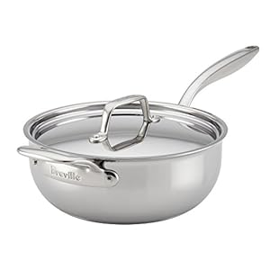 Breville Thermal Pro Stainless Steel Sauce Pan/ Saucepan/Saucier with Lid and Helper Handle, 4 Quart, Silver,32069