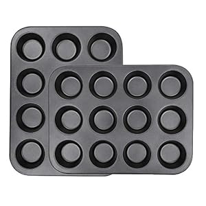 CUGBO 2 Pack DIY Baking Tray 12 Hole Round Cake Mold Cake Tools Non – Stick Coating Bakeware Baking Mold Square Oven…