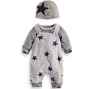 Newborn Baby 3Pcs Sets, Casual Stripe T-shirt Top Star Baggy Adjustable Bib Pants Overall Jumpsuit Hat