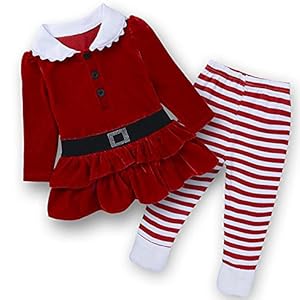 Toddler Christmas Santa Red Long Sleeve And Stripe Pant Corduroy Costume For kids 1-6T