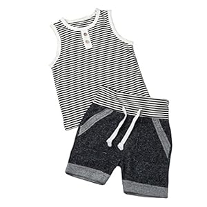 Kehen Toddler Baby Boys 2pcs Summer Outfits Sleeveless Stripes T-Shirt + Short Pants Casual Sets