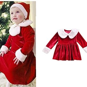 Christmas Long Sleeve Fur Neck Dress Outfits Clothes for Newborn Infant Girls