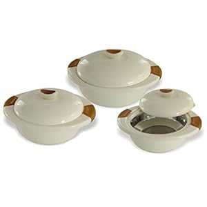 InDit Eleganza Thermal Food Server Hot-Pot Casserole, 3-Piece Set, Hot/Cold for upto 6-Hours (Assorted Colors)