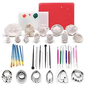 AK ART KITCHENWARE 12sets Silicone Veining Mold 5sets Petal Steel Cutters 1 Veining Board 1 Foam Pad 10 Brushes 3…
