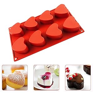 IC ICLOVER Vermilion 100% Food Grade Silicone Bakeware Cake Mold Baking Pan Heart Mold with 8 Cups for Baking Cakes…