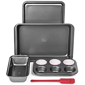 Baking Pans Bakeware Set – 5 Pieces – 6 Cup Muffin Tin Pan, Cookie Baking Sheet Nonstick Tray, Loaf Bread Pan, Lasagna…