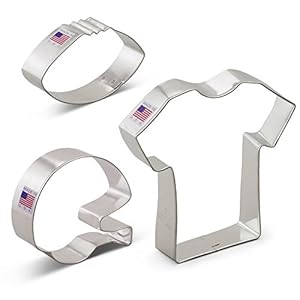 Ann Clark Cookie Cutters 3-Piece Football Cookie Cutter Set with Recipe Booklet, Football, Football Helmet, and T-Shirt
