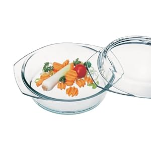 Simax Glassware Round Casserole Pan with Lid, 1-Quart