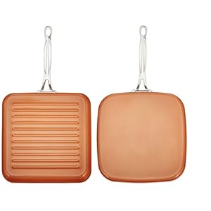 Gotham Steel 10.5″ Non-Stick Copper Grill and Griddle Combo, As Seen on TV, Large, Brown