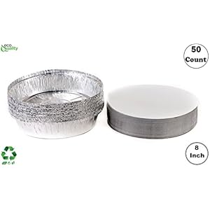 (50 Pack) – 8 Inch Disposable Round Aluminum Foil Take-Out Pans with Board Lids Set – Disposable Tin Containers, Perfect…