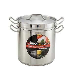 Winco SSDB-8S, 8-Quart 9-1/2″ x 6-3/4″ x 7-1/2″ Commercial Grade Stainless Steel Steamer and Pasta Cooker With Cover, Double Boiler with Lid, NSF