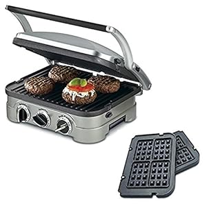 Cuisinart 5-in-1 Grill Griddler Panini Maker Bundle with Waffle Attachment (GR-4N) – Includes Grill and Waffle Plates…