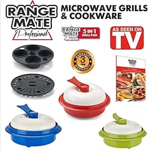 Range Mate Pro Nonstick Microwave 5-in-1 Grill Pot/Pan Cookware Set “As Seen On TV” (Grill, Bake, Roast, Saute, Steam, Poach, & One Pot Meals) (Red)