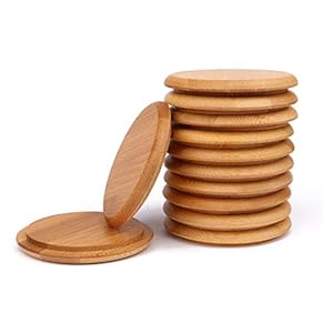Decorative Bamboo Lids for Mug Jar, Dedoot 12 Pcs Natural Color Wooden Mug Cover for Glass Cup Drink Wood Cup Lid- Outer…