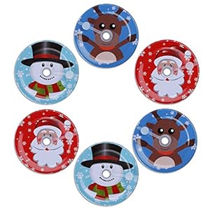 Christmas Mason Jar Lids with Hole Fit Regular Mouth Mason Jar Glasses, Metal Lids with Straw Hole & Silicone Grommet…
