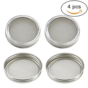 Sunnyglade 4PCS Stainless Steel Sprouting Lids/Sprouting Jar Strainer Lid Fit for Wide Mouth Mason Jars Canning Jars for…