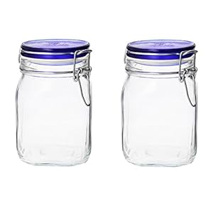 Bormioli Rocco Fido Square Jaw with Blue Lid, 33-3/4-Ounce, 33.75 Ounce, Clear