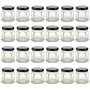 1.5 oz Hexagon Mini Glass Jars with Blue & White Checkered Lids and Labels (Pack of 24)