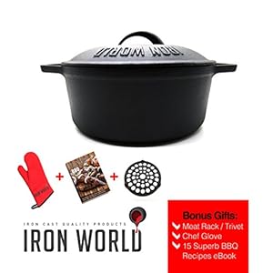 iron cast dutch oven 3.5 quart by iron world – pot with lid pre seasoned and nonstick. iron cookware great for cooking…